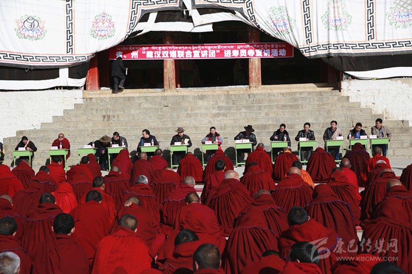 “針對農(nóng)牧民法制意識不強(qiáng)、發(fā)展意識不強(qiáng)、主觀能動意識不強(qiáng)和思想觀念落后等現(xiàn)狀,宣講團(tuán)要求我們以省委藏區(qū)工作會議精神、州第十一次黨代會精神作為宣講的主要內(nèi)容?!毙v員克波介紹說,全州遴選了一批藏漢雙語工作人員,組建了法治宣講團(tuán),啟動實(shí)施“七五”普法,深入寺廟、學(xué)校、鄉(xiāng)村(社區(qū))、機(jī)關(guān)、企業(yè)等開展法制宣傳工作。同時,全州司法行政系統(tǒng)以“法律七進(jìn)”為載體,通過法律知識競賽、憲法進(jìn)課堂、法律宣傳服務(wù)等形式,全力做好法制宣傳教育,進(jìn)一步提高全民法治意識,努力形成“人人守法、依法辦事”的正確導(dǎo)向和良好氛圍,全面推進(jìn)依法治州進(jìn)程。