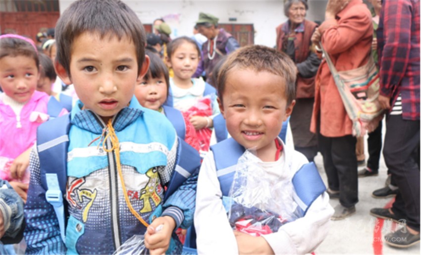 俄牙同鄉(xiāng)小學的孩子們收到志愿者送來的物資,大方的提出合影。