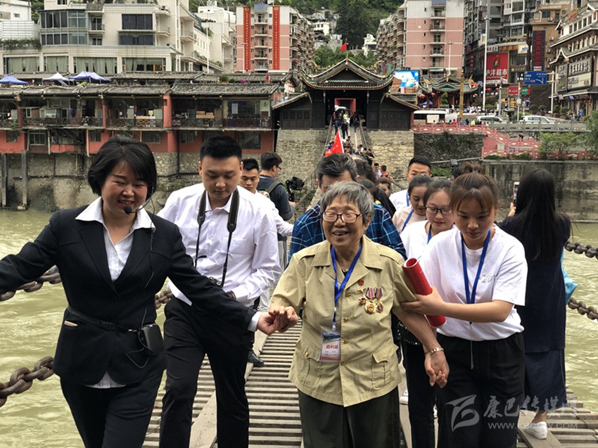 十八軍老戰(zhàn)士及其后代重走瀘定橋。