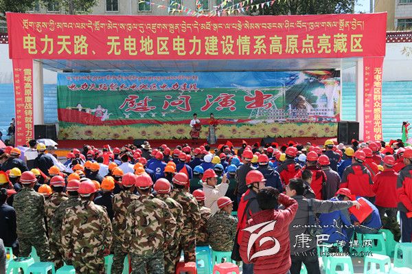 本網(wǎng)訊(見習記者 陳雪峰 文/圖) 8月29日,由中共甘孜州委、甘孜州人民政府和國網(wǎng)四川省電力公司主辦,州委宣傳部、州發(fā)改委和中共甘孜縣委、甘孜縣人民政府共同承辦的“電力天路”暨無電地區(qū)電力建設慰問演出活動在甘孜縣舉行。州政府副州長張平森和國網(wǎng)四川省電力公司副總經(jīng)理丁燕生等蒞臨慰問演出現(xiàn)場。