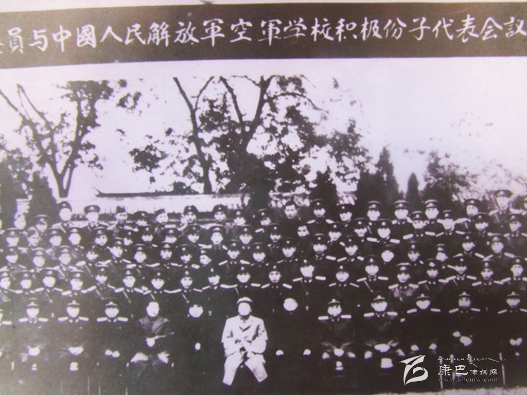 1956年10月28日,是肖金棟永生難以忘懷的日子。作為中國人民解放軍空軍學(xué)校積極分子的一員,肖金棟和全體學(xué)員在北京中南海懷仁堂受到了毛主席、朱德總司令和賀龍元帥的親切接見并合影。“當時,我就站在毛主席身后的第三排,嗯,就是這個,你看像不像?”肖金棟指著拍攝了距今近60年的老照片興奮地對記者說。由于照片年代久遠,已經(jīng)難以辨認每個人的面部表情了,但大致輪廓依然能夠看清楚。