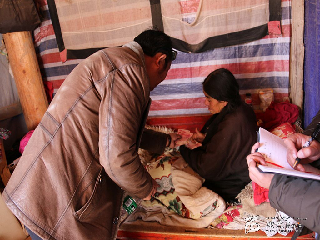 益西則瑪因患肺結(jié)核并伴有積水到成都治療,在花費(fèi)了近3萬(wàn)元的治療費(fèi)后,她中斷了治療。3萬(wàn)元,對(duì)于一個(gè)貧困家庭無(wú)疑是筆巨款,讓他們?cè)贌o(wú)能力繼續(xù)治療。鄉(xiāng)上得知情況后,立即對(duì)此進(jìn)行研究,決定賡即向有關(guān)部門(mén)反映相關(guān)情況盡量為益西則瑪爭(zhēng)取到救助資金,同時(shí),鄉(xiāng)上干部職工積極捐款捐物,下午孫曉牧帶著第一書(shū)記和包村干部來(lái)到益西則瑪家,把捐款和大米、清油送到了益西則瑪家,解決她家的燃眉之急。圖為孫曉牧將捐款送到益西則瑪手中。(唐書(shū)偉 陳雪峰 攝影報(bào)道)