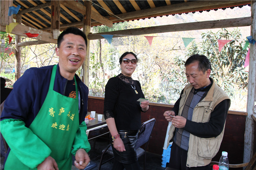 瀘定縣杵坭鄉(xiāng)茅廬農(nóng)莊老板熱情接待客人。