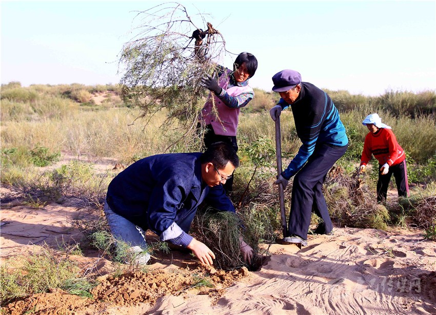 “長(zhǎng)柄扁桃根系特別發(fā)達(dá),抓沙固土和適應(yīng)能力更強(qiáng);存活期長(zhǎng)達(dá)百余年。一旦成林,能夠長(zhǎng)期發(fā)揮生態(tài)效益?!睆垜?yīng)龍說,“一般灌木隔幾年就需要平茬,否則會(huì)自然枯死。長(zhǎng)柄扁桃卻不需要平茬,能節(jié)省大量管護(hù)費(fèi)用。其本身還是一種油料作物,有很好的經(jīng)濟(jì)價(jià)值。”