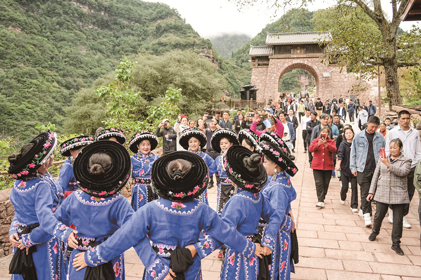 除了感受田園慢生活,嵐安古寨獨(dú)特的自然風(fēng)光也讓游客放慢了腳步。“雙節(jié)”假期,嵐安特色民宿依托優(yōu)美的自然環(huán)境和貴瓊文化,吸引了不少游客入住,游客可以住在藏寨里,品嘗特色美食、跳嵐安鍋莊、體驗(yàn)推豆腐等特色民俗活動(dòng)。
