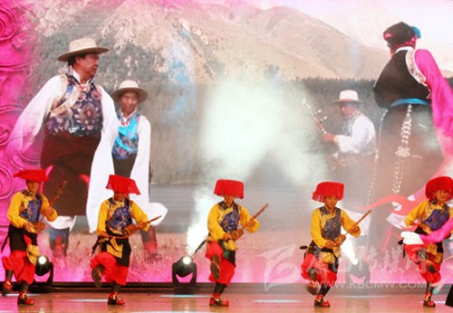 酒歌,藏語稱“羌諧”,流行于我州各縣。除主要幾種曲調(diào)普遍傳唱外,各地還有各自的唱法?!扒贾C”是在重大節(jié)日、迎接貴賓、親友歡聚時,興之所至,親友之間相互敬酒,對待貴賓則高舉酒杯以誠相敬。還有一種只唱不舞的酒歌,即“央金道道”。曲調(diào)優(yōu)美,音韻悠長。