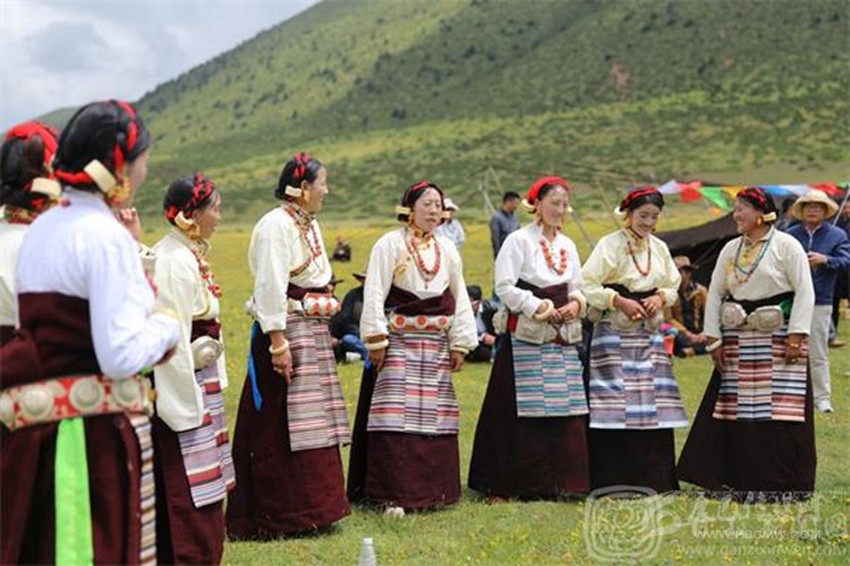 主要分布在道孚、雅江、康定縣折多山以西農(nóng)區(qū),九龍縣農(nóng)區(qū),瀘定嵐安鄉(xiāng)一帶又各自有特點(diǎn)。木雅地區(qū)服飾,婦女頂戴袋狀帽,將帽檐一側(cè)內(nèi)疊扣于頭上,上沿額伸出頭額前,寬至兩鬢,長約30厘米的袋狀帽箭垂于腦后,然后用大紅頭繩或五彩頭繩編發(fā)辮纏盤于帽上,端莊嫵媚。男著柔軟的潔凈光面羊皮袍,或在皮袍面上鑲吉祥符,卷草花圖案,質(zhì)樸、粗礦而美觀,頭戴狐皮帽。